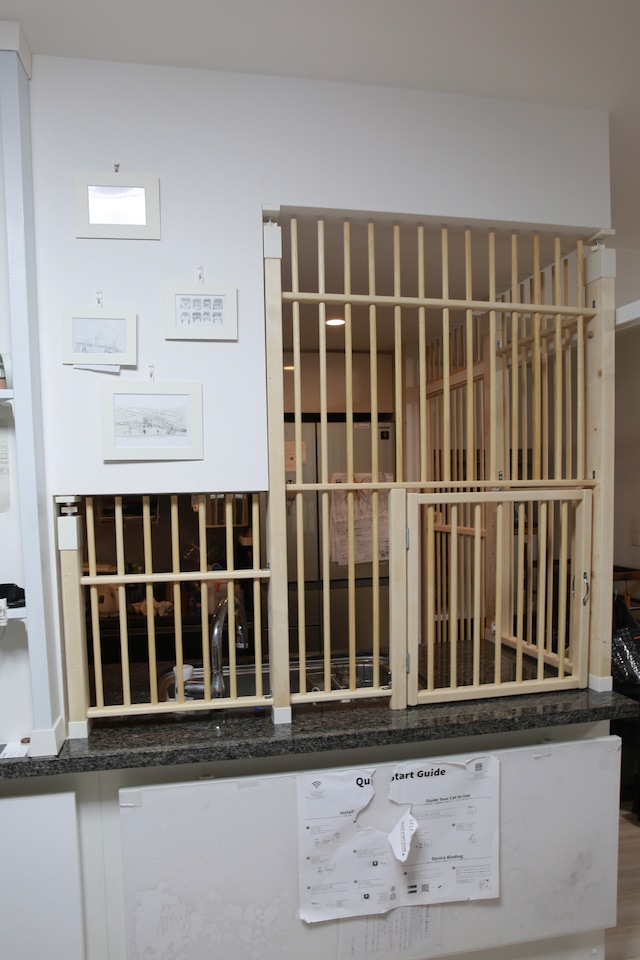 #にゃんこフェンス #猫の侵入防止柵 #オーダーメイド家具 #カスタム家具 #カウンターキッチン #木製フェンス #カウンター開き戸 #猫のいる暮らし #賃貸でも安心 #ハンドクラフト